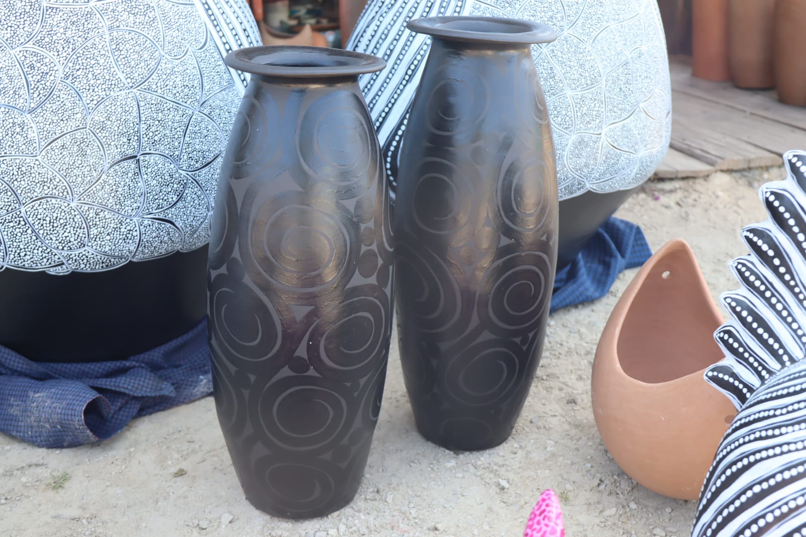 No es barro negro sino pintado a mano. ELEGANTES TIBORES
